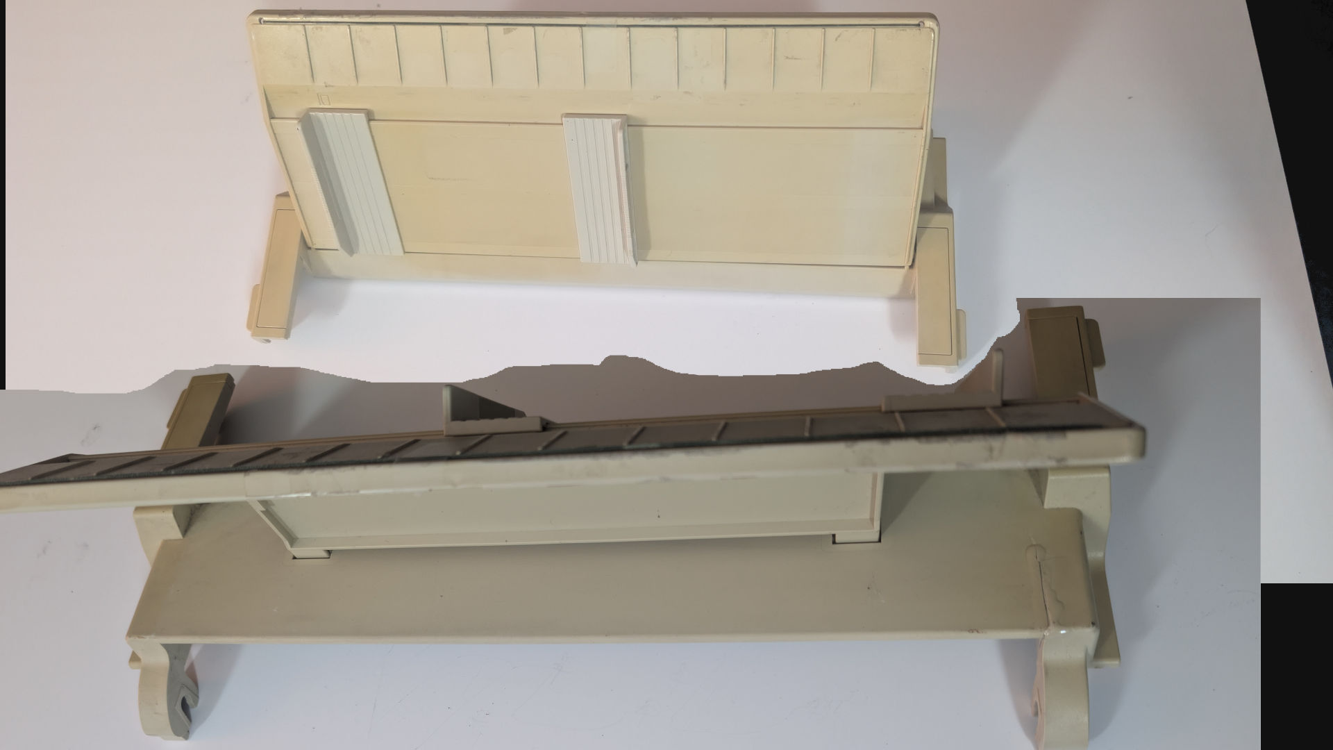 Now, we had to sit back and think. Did we get our money's worth out of this deal? It was $90USD all together. So, considering all of the electronics work. And we just cleaned the mechanics thus far. We didn't ask for my money back. Because it was sold AS-IS and parts only, and we indeed got parts! But we did contact the vendor and let them know what happened. To their credit, they apologied stating that they will talk to their shipping people. And asked if we wanted our money back. I replied it's good.. And also told him that since he was selling another like this. Raise the price and pack it with either heated foam packs or legit bubble in a cubed box. Plastics, even yellowed ones, are like gold for someone in the vintage collection scene.